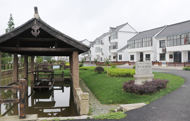 村民赵亚芳家门前,就是沪上有名的“清代古船舫遗址”。2016年初,这里发现了七根石柱子,后经专家的发掘、考证,这是一座清代古船舫遗址,也是上海市首个经正式发掘、与水下文化遗产密切相关的半淹没遗址。遗址发现之初,所在的蔡家楼河道淤积,周围一片脏乱差,但现在,河边竖起了“金山区文物保护单位”的牌子,古色古香的古船舫已经被还原呈现出来,清清的河水绕着船舫柱子流过。