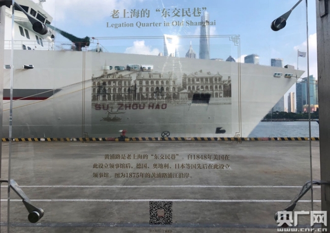 漫步期间,随时可扫描上面的二维码,追溯老上海码头文化发展史迹。(央广网记者王晶 摄)