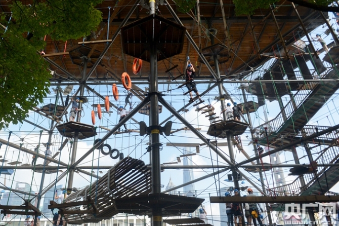 这是北外滩滨江绿地独特的功能设置,“潮玩”项目吸引了不少年轻人前来体验刺激。