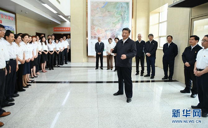 7月15日至16日,中共中央总书记、国家主席、中央军委主席习近平在内蒙古考察并指导开展“不忘初心、牢记使命”主题教育。这是16日上午,习近平到内蒙古自治区自然资源厅,实地调研指导开展“不忘初心、牢记使命”主题教育。 新华社 记者谢环驰/摄