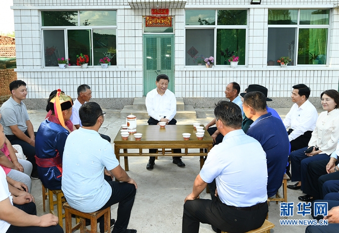 7月15日至16日,中共中央总书记、国家主席、中央军委主席习近平在内蒙古考察并指导开展“不忘初心、牢记使命”主题教育。这是15日下午,习近平在赤峰市喀喇沁旗河南街道马鞍山村村民张国利家,同基层干部群众代表座谈交流。 新华社 记者谢环驰/摄