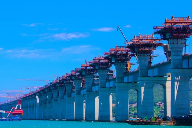 作为世界在建难度最大的海峡大桥,项目自2013年底开工建设,克服了大风、水深、浪高流急、海底裸露倾斜岩面等恶劣气象、水文、地质难题。