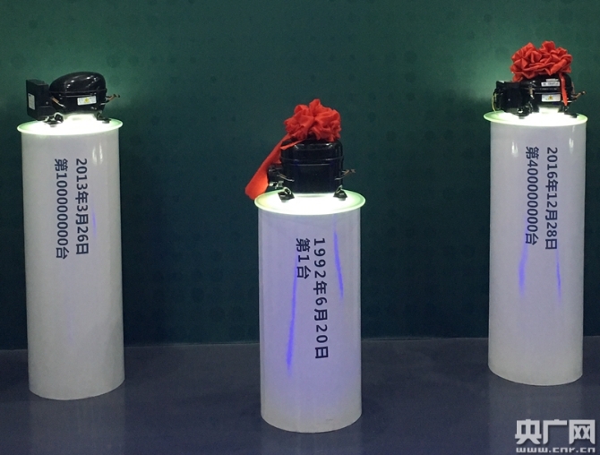图为加西贝拉公司压缩机产品。(央广网记者 董然/摄)