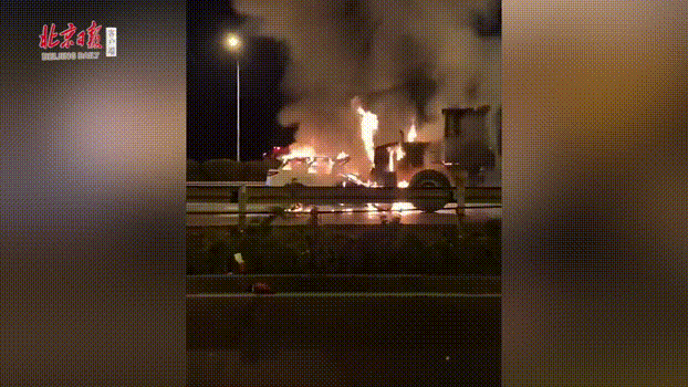 视频显示,两车相撞后先是冒起浓烟,后来车头起火,随后火势越来越大。几位路人用自己车内的灭火器扑救,但因为火势过大,无法扑灭。后车内的两人在事故中死亡。
