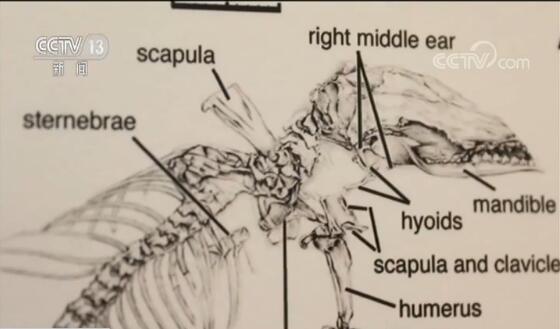 沈阳师范大学自然资源部重点实验室教授 周长付:刚开始我们也没意识到,但后来这块(化石)的保存位置属于原位置,正好在咽喉部分,后来发现这应该是舌骨。再通过现代(哺乳动物)系统解剖来对比,确定就是舌骨。而且它的结构和现代哺乳动物的舌骨构造是一样的。
