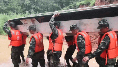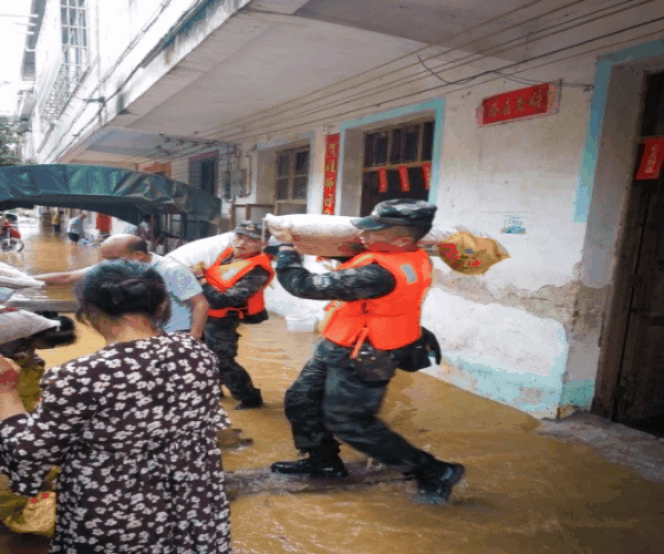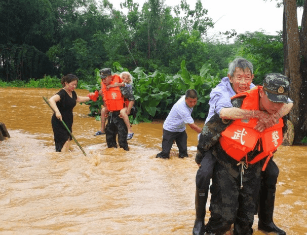 近日,受强降雨影响,江西赣州瑞金、于都、会昌等地突发严重洪水内涝,导致3000余名群众受困。武警江西总队赣州支队四路出击,赶赴瑞金万田乡、九堡镇、于都沙心乡、会昌西江镇等地转移受困群众。