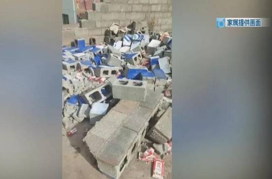 事后几天,当油纸布被清理开后,依然可以看到公房院内四处散落的水泥空心砖。