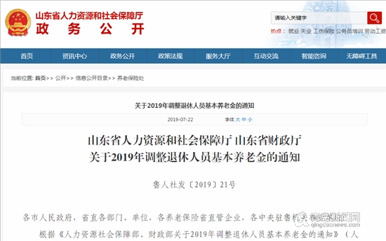 今天,青岛新闻网记者从山东省人力资源和社会保障厅官网获悉,日前,《关于2019年调整退休人员基本养老金的通知》正式印发,确定从2019年1月1日起调整退休人员基本养老金。这是我省自2005年以来连续第15年调整企业退休人员养老金,也是继2016年之后连续第4年统一安排、同步调整企业和机关事业单位退休人员待遇。