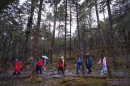 轻抚着大山的林木和积石,我们颤颤巍巍趴在大山的脊背,向圣洁的山巅攀爬。已经四千多米的海拔,与石块相生相伴的杂草,让我如同踩着祥云,稍有不慎便会跌落深涧。远方县城高耸的楼宇,一堆一堆散落的村落,一片一片金黄的油菜花,还有山脚下牛羊的哞叫,袅袅婷婷升起的炊烟。多美啊,一幅世外山居的美图。我想爬到山巅,一睹传说中的天池,据说还有太山老君炼丹的仙洞。但山腰杂乱松动的碎石,和巍峨屹立的山岩,让我望而却步。那些挤出石缝的小花,紫的、黄的、白的,她们迎风招展。几只鹰在云端盘旋,山巅还在无尽的远方,被一片云雾覆盖,更显她的神奇、神圣和俊美。整整六个小时了,我还在老君山的肩膀攀爬。我明白,这里的世界属于雄鹰,不畏严寒的松柏,属于那些美丽但不知名的野花,属于山风,属于飞雪,属于终日不辞劳苦攀爬寻食的牛羊,属于打着口哨放牧的小伙。