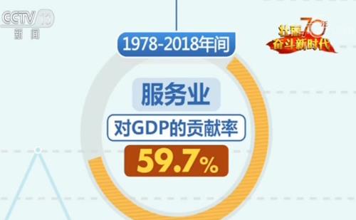 数据显示,服务业对经济增长贡献率稳步提升。1978年底,服务业对当年GDP贡献率仅为28.4%,低于第二产业33.4个百分点。改革开放后,随着工业化、城镇化的快速推进,企业、居民、政府等各部门对服务业需求日益旺盛,服务业对经济增长的贡献率不断提升。1978-2018年间,服务业对GDP的贡献率提升了31.3个百分点,达到了59.7%。