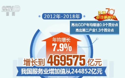 党的十八大以来,服务业发展进入新阶段,推出了一系列改革举措来培育和促进服务业新经济、新动能的发展不断壮大。数据显示,2012-2018年,我国服务业增加值从244852亿元增长到469575亿元,年均增长7.9%,高出GDP年均增速0.9个百分点,高出第二产业1.3个百分点。服务业在国内生产总值中的比重进一步上升,6年提高了6.7个百分点,2015年超过50%,2018年达到52.2%,占据国民经济半壁江山。(央视网)