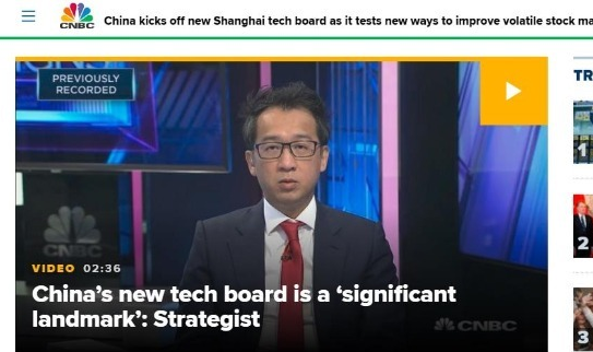 美国CNBC网站7月22日报道,中国推出了类似纳斯达克(Nasdaq)的新科技板块——科技创新板(Science and Technology Innovation board,STAR),首批共有25家公司在该板块上市。