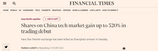 英国《金融时报》报道,与上交所和深交所的主板不同,在科创板上市无需政府审批,在吸引科技公司上市方面,科创板在中国是独一无二的,包括允许未盈利企业、同股不同权企业发行上市,这可以让创始人保留对企业运营的控制权。