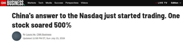 美国有线电视新闻网(CNN)7月22日报道,中国宣布将推出科创板至7月22日科创板开市,仅历时8个月。根据上海证券交易所的数据,已有100多家公司申请在科创板上市。