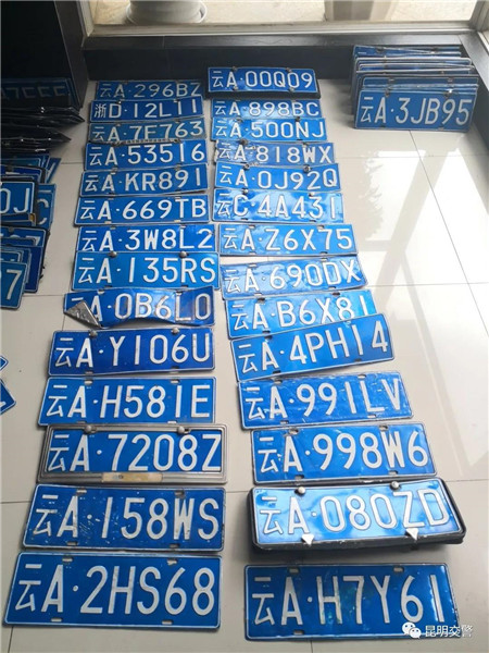 上周末的暴雨,致使很多车辆的车牌遗失。7月22日,昆明交警通过官方微信公众号发布了一批待认领的车牌,并公布了各大队的联系方式。