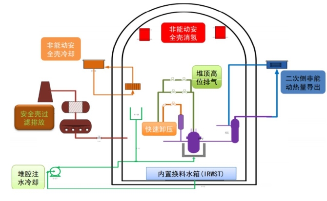 设置非能动安全壳热量导出系统,能够在安全壳密封的情况下排出安全壳内的热量,维持安全壳内压力小于其承载能力;