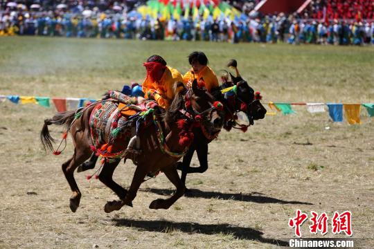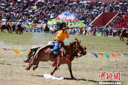 据了解,玉树赛马会是目前青海藏区最大规模藏民族盛会,该项民俗体育活动已于2008年6月被列入中国第二批国家级非物质文化遗产名录。(中国新闻网 记者罗云鹏)