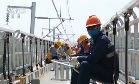 在山东,为了保证鲁南高速铁路的顺利开通,铁路工人每天顶着烈日忙碌在施工现场,对所有设备进行静态验收,保证8月1日的联调联试可以正常送电和开通。