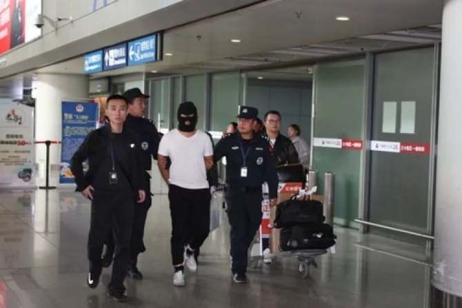周脉军押解犯罪嫌疑人。新华社记者薛晨摄