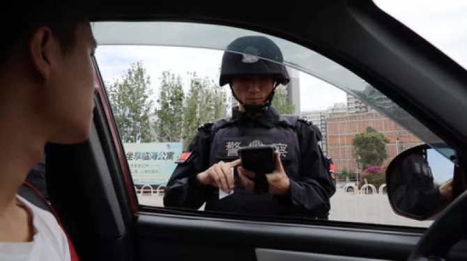 周脉军正在高速公路收费站口进行查缉毒品。新华社记者薛晨摄