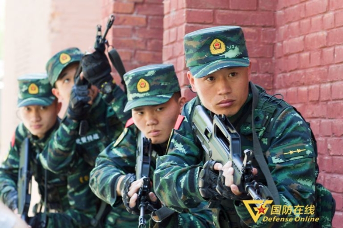 李玉峰和其他特战队员们在训练。郝宽虎 摄