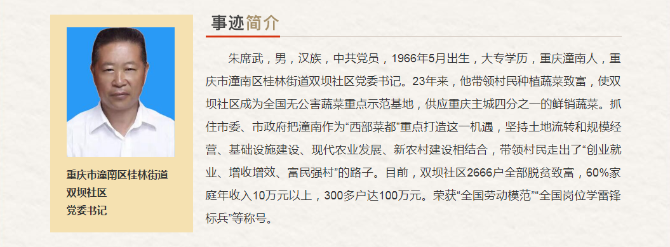重庆市“最美奋斗者”推荐人选