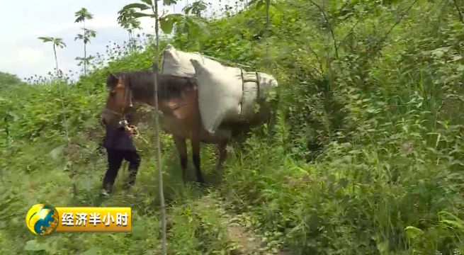 但是在往年,就算药材的涨势再好,村民也高兴不起来。因为想要将药材运出去,只能靠肩挑背扛一二百多里路,人力成本非常高。一斤药材背下山就要5角钱,每人一次只能背七八十斤,人力运输成本占卖价的三分之一。罗盘村村民陶化中是药材种植大户,家里有一千亩的药田,即便用马驮,碰到不好走的陡坡,马也会出现滚下山的情况。