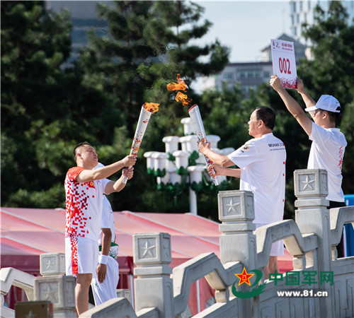 这来自人民军队诞生地的火种,点燃了安放在八一南昌起义纪念塔前的圣火盆,随后由国际军事体育理事会秘书长曼比·科伊塔点燃第一支火炬。