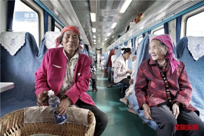 文卫芳列车长在6162次公益扶贫列车上已经工作多年,“这个季节做果蔬生意的乘客是大头,另外就是游客、学生、赶街的,我们要路过禄丰、广通、黑井和元谋,年纪大的乘客喜欢坐着火车去赶街。”