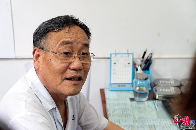 北团村社区医院的医务室里柏志华正在为村民看病。 中国网 杨佳 摄影