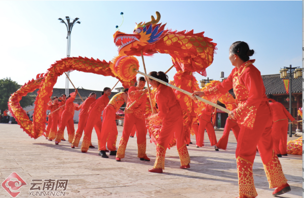 2日一早,锣鼓声声,传统的舞龙舞狮表演沸腾了小镇。表演队伍从姚安路军民总管府出发,沿古镇小道舞动而行,吸引了市民与游客纷纷观赏拍照。