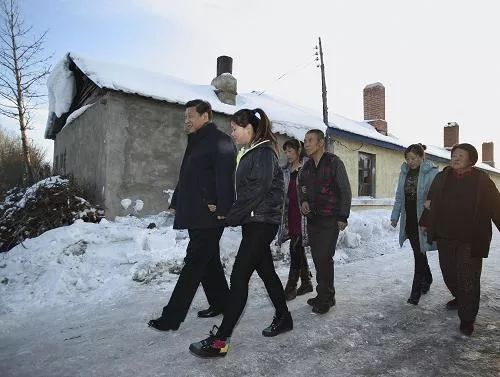 △2014年1月26日,习近平冒着零下30多度的严寒,来到兴安盟阿尔山市伊尔施镇,看望慰问74岁的困难林业职工郭永财一家。