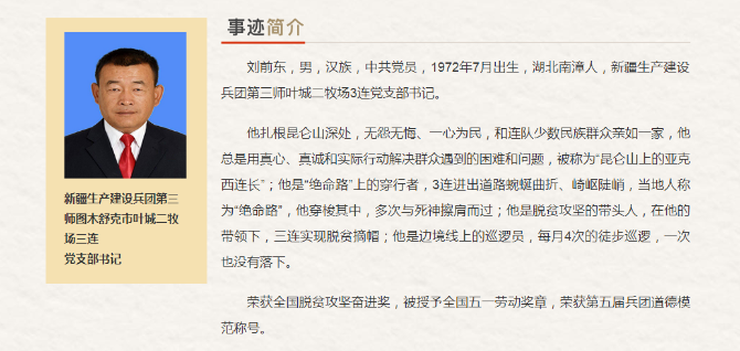 新疆生产建设兵团“最美奋斗者”推荐人选