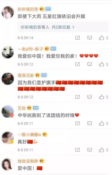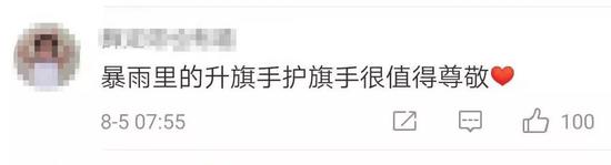 在大家纷纷吐槽暴雨的时候,这一幕格外触动人心。也是在今天早上,北京正在下暴雨的时候,还有很多人冒雨来看周一的升国旗仪式。