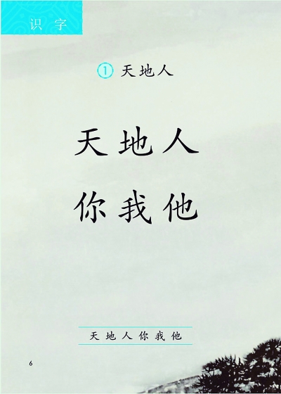调查显示,90%的学龄儿童入学前都认识“天”和“人”,而80%的学龄儿童认识“地”。所以,统编《语文》教材在“识字”单元,呈现给一年级新生的第一课是学认“天地人你我他”六个字。“由他们熟悉的事物入手,可以提高心理接受程度,缓解学习语文的压力,降低学习难度,减少畏难情绪。”陈先云说。