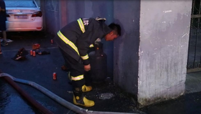 我们6点30分吃饭,我是刚吃到一半接到报警就出来了,进入宾馆搜救里面压根看不清,摘掉呼吸面罩吸入了浓烟,在里面高强度的搜救,所以出来有点累吐了。