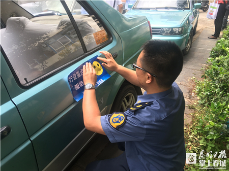 下午14时,记者在市出租汽车管理局楼下看到工作人员正在对列为重点监管的车辆两侧粘贴印有“行业重点监管”的标识。“本次粘贴标识的车辆是去年下半年和今年上半年年统计出来的第一批重点监管车辆,是行业内服务质量差、投诉较多的车辆和人员。”市出租汽车管理局相关负责人介绍,粘贴之后,驾驶员不得私拆监管标识,对私自拆除“行业重点监管”标识的,市出管局将严格按《昆明市客运出租汽车管理条例》予以处罚,欢迎广大市民共同监督。