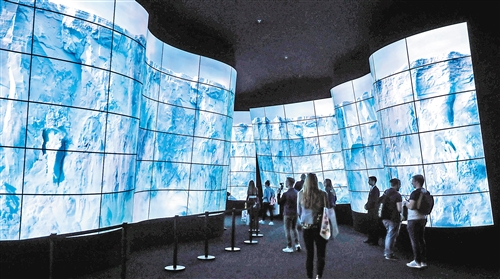 参观者在第58届柏林国际消费电子展上体验柔性OLED电视。(新华社发)