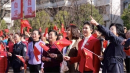 本是来踏青登山的市民陈阿姨边跟唱边用手机拍下了快闪活动全程,她说:“以这样一种方式缅怀聂耳,歌唱我们中国,很有意义,很荣幸见证了这个仪式。”