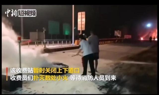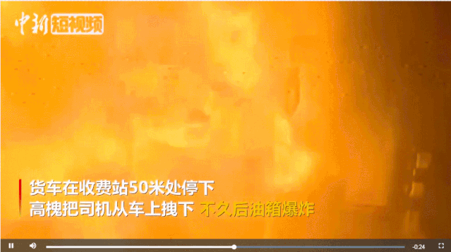 @平安出行鸭:烈火英雄!收费站口冲出着火大货车,收费员临危不乱