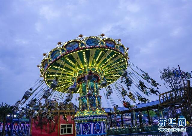 人们在重庆一家游乐园体验夜间游乐项目(7月6日摄)。新华社记者刘潺摄