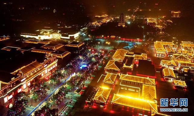 西安市曲江大唐不夜城夜景(8月8日无人机拍摄)。新华社记者刘潇摄