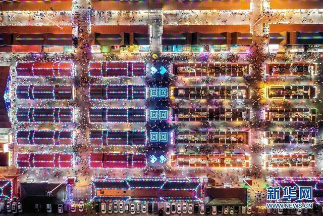 沈阳市塔湾兴顺国际夜市(7月31日无人机拍摄)。新华社记者潘昱龙摄