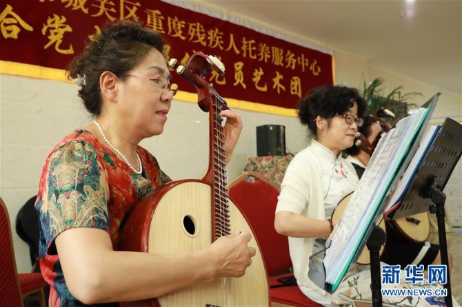 兰州市民在虚拟养老院一处排练室演奏(7月31日摄)。新华社记者 梁军 摄