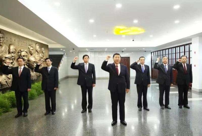 2017年,党的十九大胜利闭幕一周之际,习近平总书记带领中共中央政治局常委赶赴上海和浙江嘉兴,瞻仰上海中共一大会址和浙江嘉兴南湖红船。