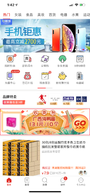 14日“秒杀万人团”推出了爆款农产品广西北海海鸭蛋、以及平台大幅补贴后低于成本价的东北大米,截至当日13点,1.6万单鸭蛋即售罄,大米也售出1.4万单。据悉,农货节此后将陆续推出特仑苏牛奶、若羌灰枣、宁夏枸杞、贵州红心猕猴桃、会理石榴、广西百香果等秒杀万人团。