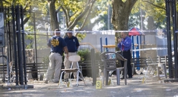 8月14日,在美国宾夕法尼亚州费城,警察在枪击案现场周边维持秩序。新华社/美联