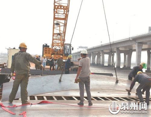 泉州湾跨海大桥主栈桥与沿海大通道处支栈桥完成连接