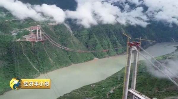 金沙江穿行于川藏滇三省区之间,河床陡峭,江势险峻。就在距离云南丽江市区40公里的金安乡, 正建设着世界上最大跨径峡谷悬索桥。在距离江面160层楼的高度建设“超级工程”,成为一项新的世界奇迹。