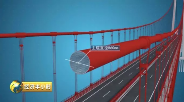悬索桥,就是将索缆悬挂在桥两端的塔架上。而固定在两岸大山中的两根钢丝绳叫主缆,是整个大桥的生命线。因此,主缆的架设是整座大桥最关键的核心工序。